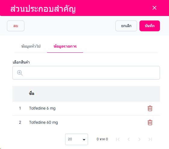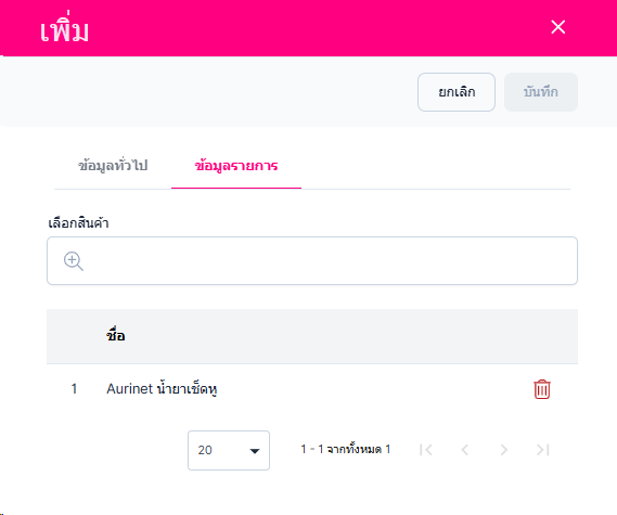 • ข้อมูลรายการ สามารถลบหรือเพิ่มรายการสินค้าได้ เมื่อแก้ไขตั้งค่าเสร็จแล้วกดปุ่ม"บันทึก