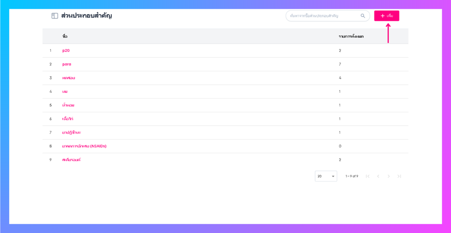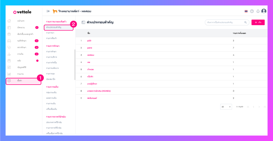 เลือกเมนูตั้งค่า > เลือกหัวรายการยาและสินค้า  > ส่วนประกอบสำคัญ