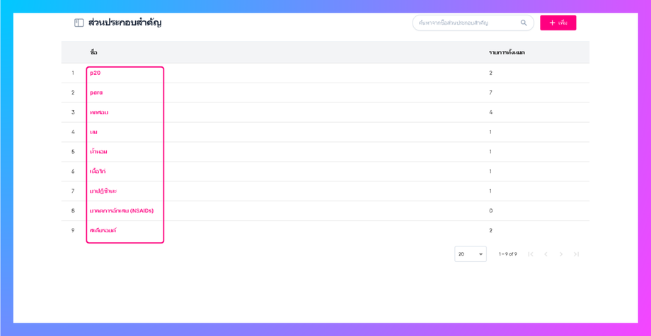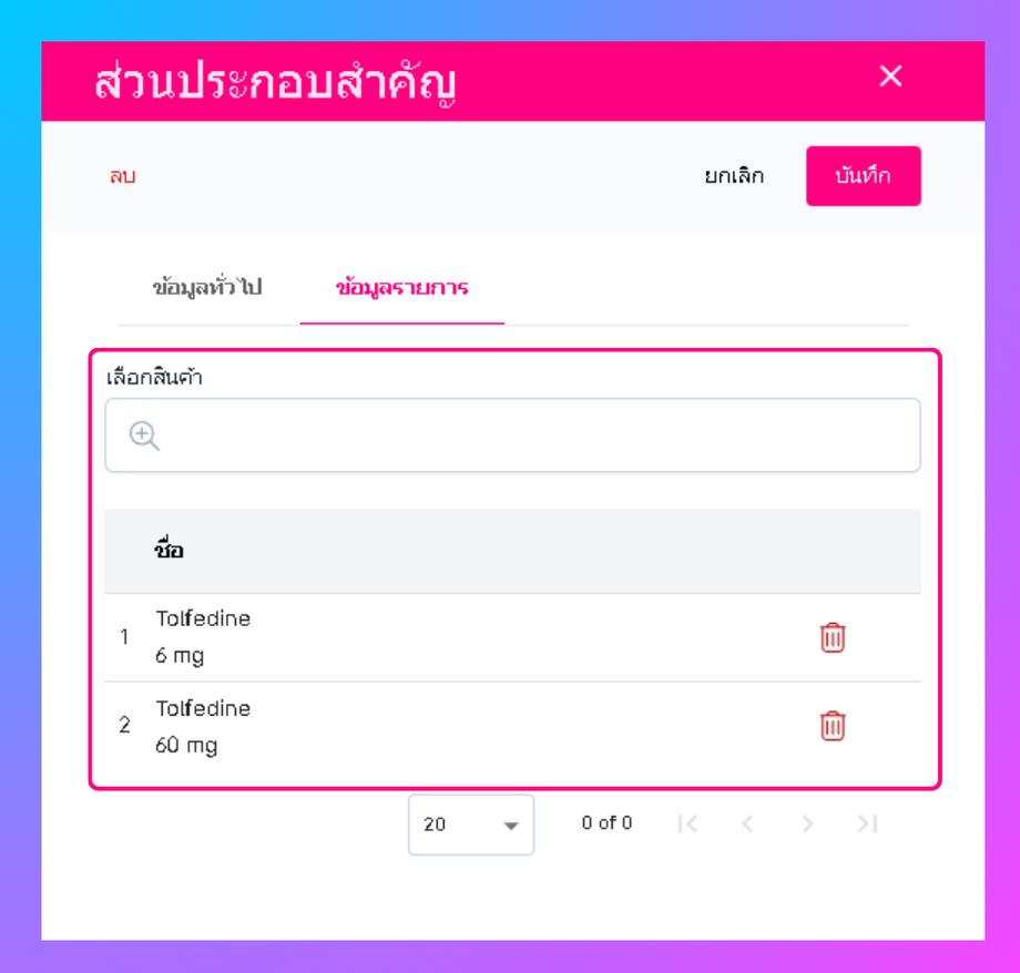 จะมีหน้าต่างแสดงขึ้นมาให้กรอกข้อมูล กรอกชื่อส่วนประกอบสำคัญของยา