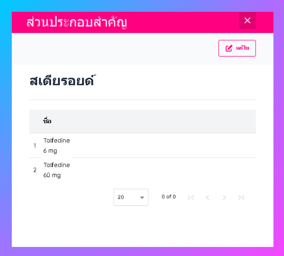 • ข้อมูลรายการ เพิ่มชื่อยาที่มีส่วนประกอบของสเตียรอยด์