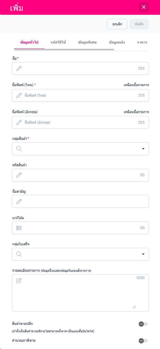 • สามารถเพิ่มข้อมูลได้จากหน้านี้ได้เลยไม่จำเป็นต้องไปเพิ่มที่หน้าตั้งค่า