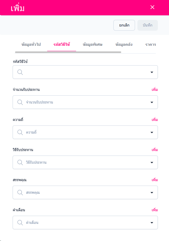 • รหัสวิธีใช้ สามารถแก้ไขข้อมูล หรัสวิธีใช้งาน ความถี่ วิธีรับประทาน สรรพคุณ คำเตือน