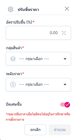 • ผู้ใช้งานสามารถแก้ไขเป็นเปอร์เซ็น และเลือกระดับราคาที่จะแก้ไขได้