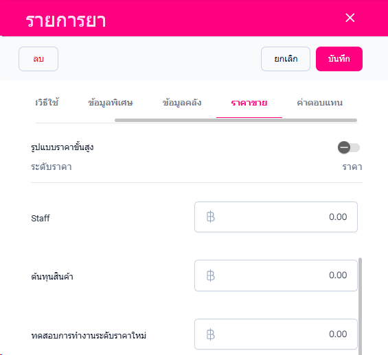 • ราคาขาย สามารถแก้ไขข้อมูล ราคาต่อระดับได้