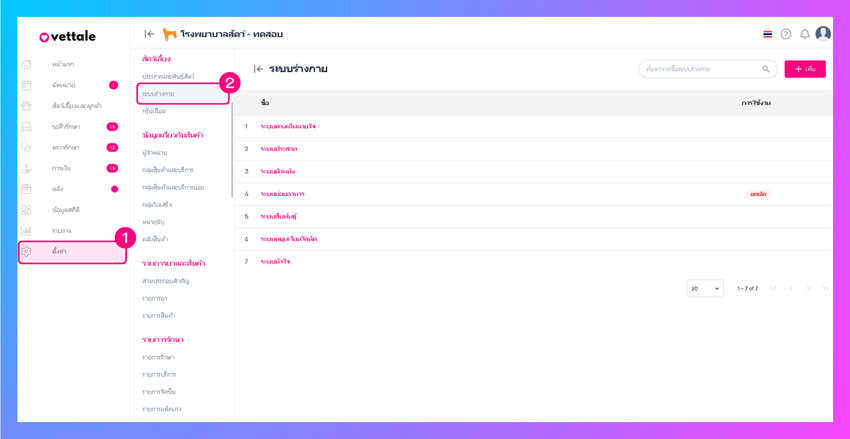 ส่วนนี้เป็นระบบการจัดการการตั้งค่าระบบร่างกายของสัตว์ เพื่อแสดงระบบร่างกายที่สามารถเลือกใช้ในการรักษาสัตว์