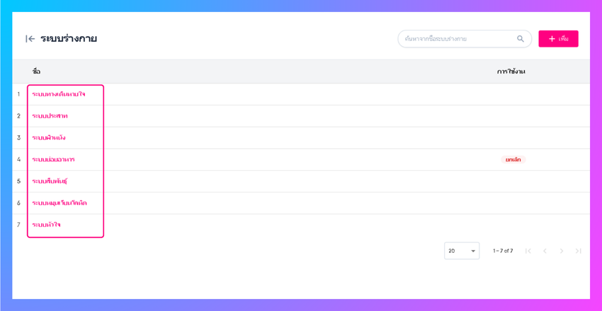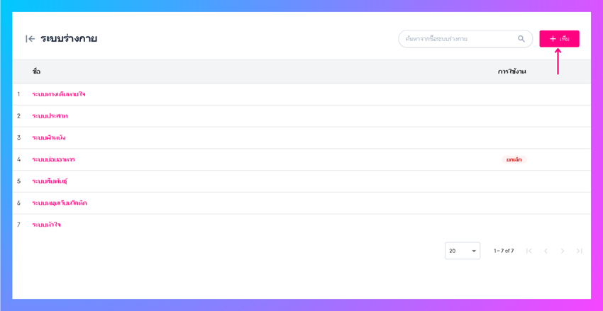 หากผู้ใช้อยู่ในหน้าระบบร่างกาย คลิกปุ่ม"เพิ่ม"