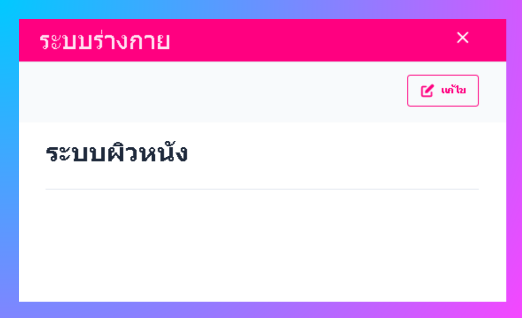 ระบบจะเข้าสู่หน้าแก้ไขระบบร่างกายที่ผู้ใช้งานเลือก ผู้ใช้งานสามารถแก้ไขข้อมูลระบบร่างกายได้