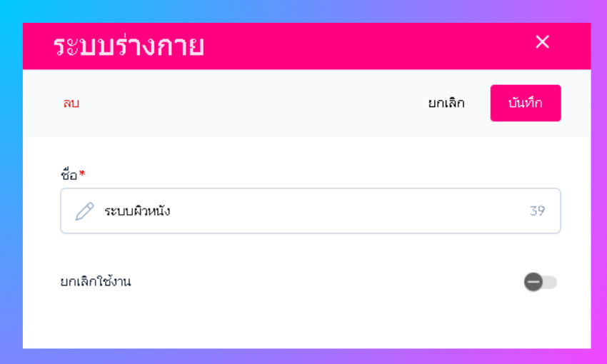 ระบบจะเข้าสู่หน้าเพิ่มระบบร่างกาย ให้ผู้ใช้งานใส่ชื่อระบบร่างกาย