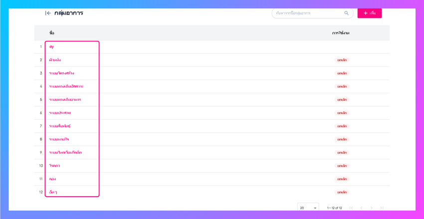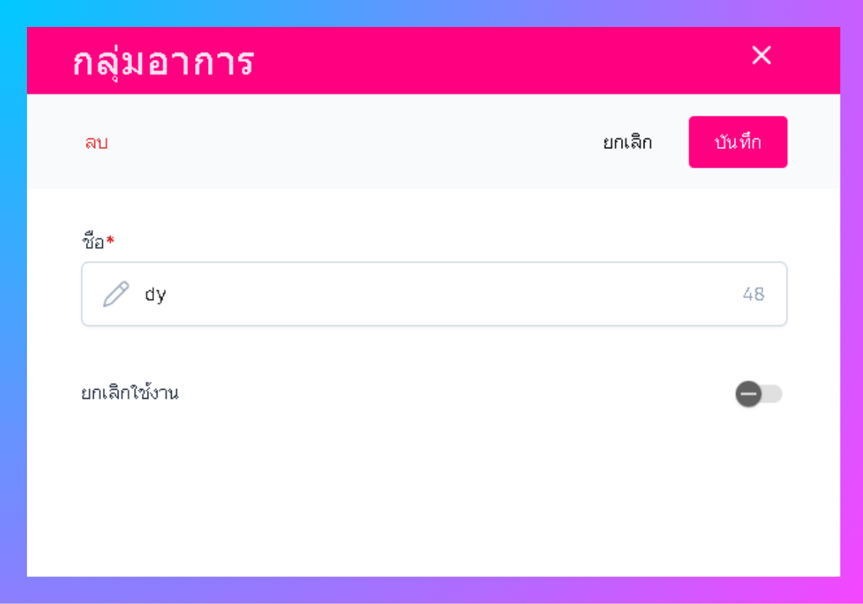 ผู้ใช้งานจะเข้าสู่หน้าแก้ไขสามารถแก้ไขชื่อ และยกเลิกใช้งานหรือลบ กลุ่มอาการได้