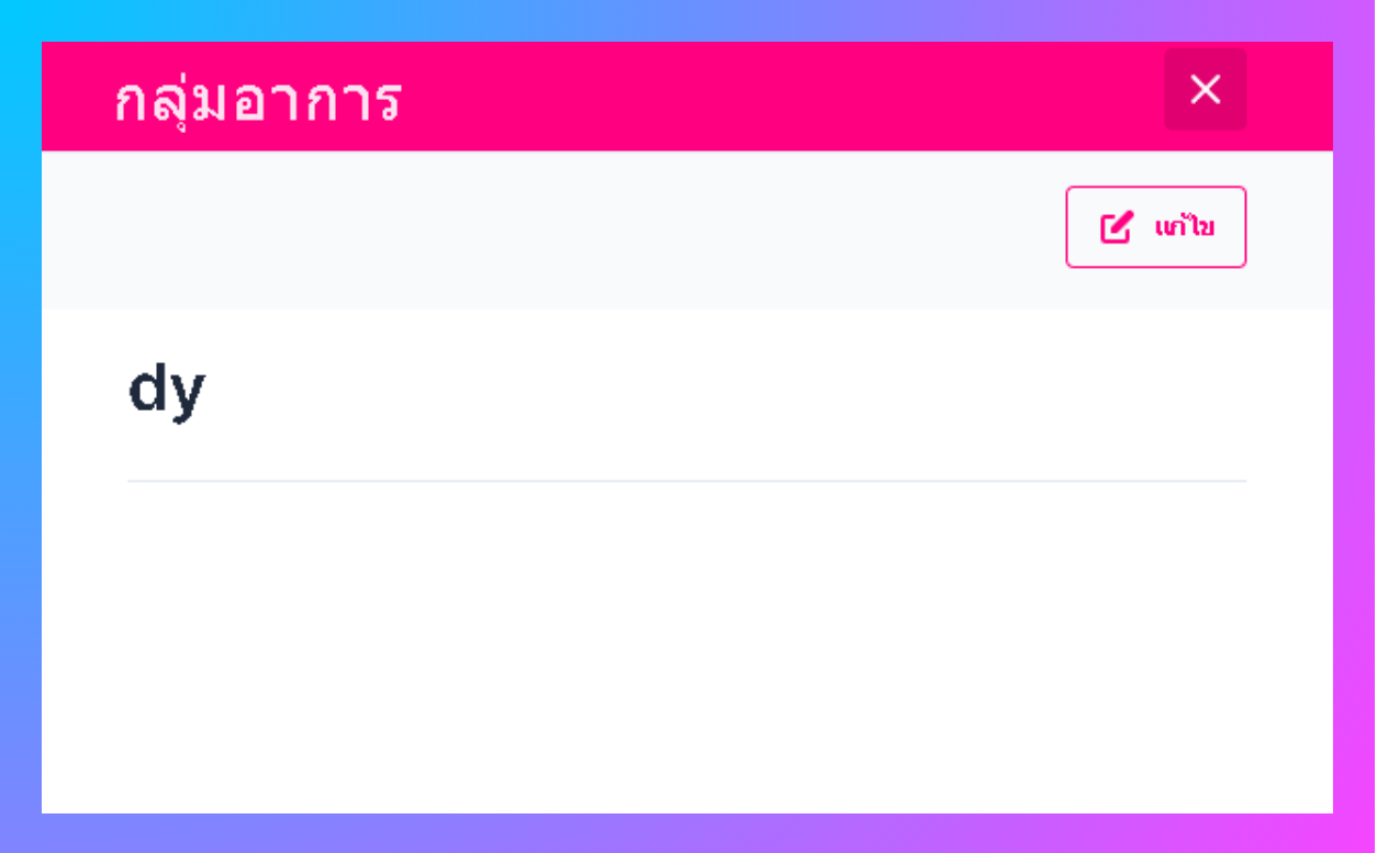 ผู้ใช้งานจะเข้าสู่หน้ารายละเอียดกลุ่มอาการ ให้กดแก้ไขมุมบนขวาเพื่อทำการแก้ไข
