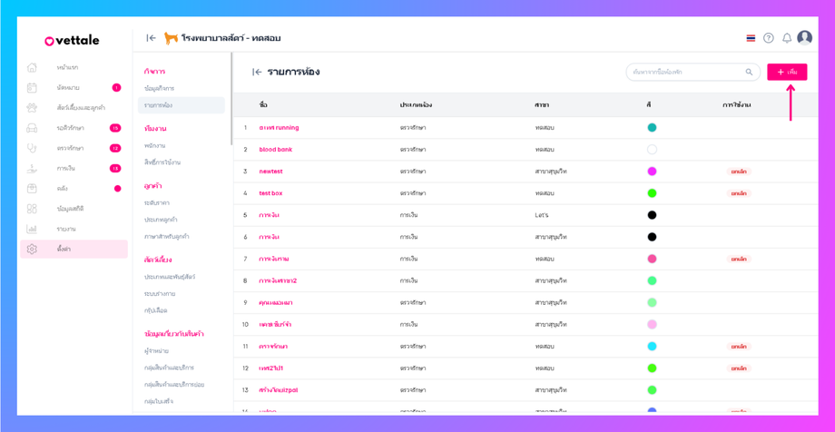 เมื่อผู้ใช้งานเข้าสู่หน้ารายการห้อง คลิกปุ่ม "เพิ่ม"