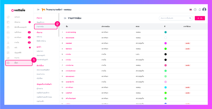 ไปที่เมนูตั้งค่า > เลือกเมนูกิจการ > รายการห้อง