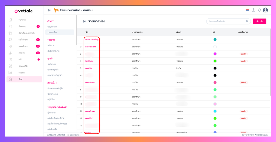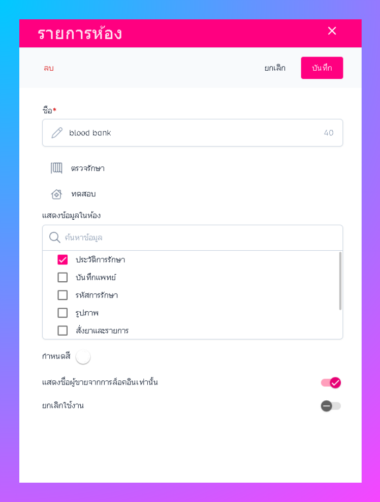 ผู้ใช้งานสามารถตั้งค่ารายการห้องได้จากการกดคลิกที่ชื่อ