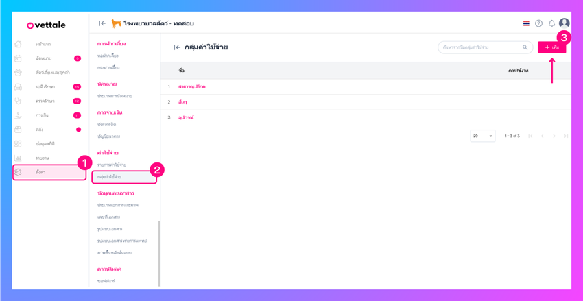 ไปที่การตั้งค่า > เลือกเมนูค่าใช้จ่าย > กลุ่มค่าใช้จ่าย ให้ผู้ใช้งานคลิกปุ่ม "เพิ่ม"