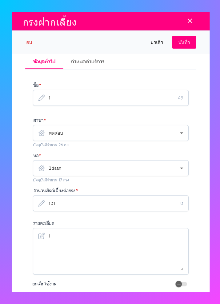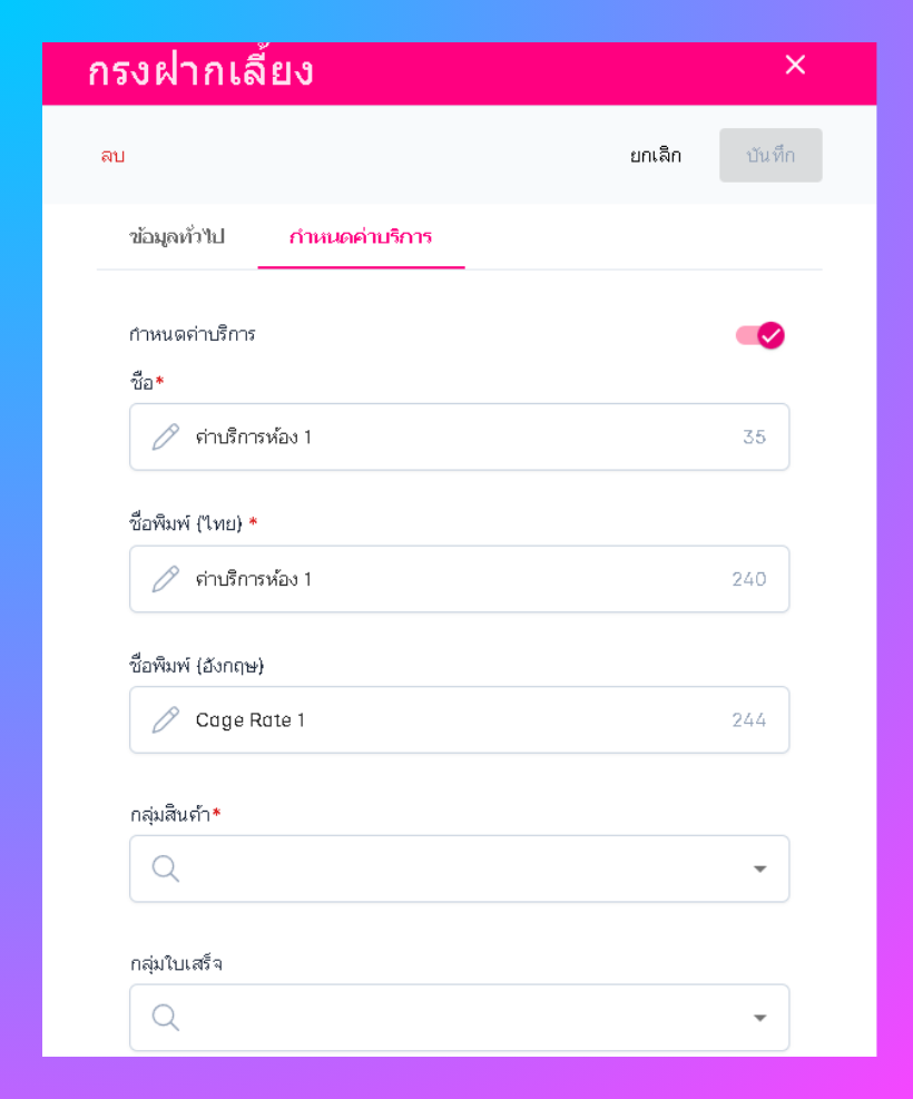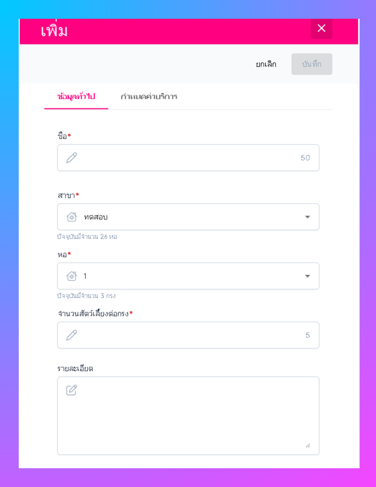 เมื่อผู้ใช้อยู่ในหน้ากรงฝากเลี้ยง ให้ผู้ใช้เลือกรายการที่ต้องการกำหนดค่าบริการฝากเลี้ยง