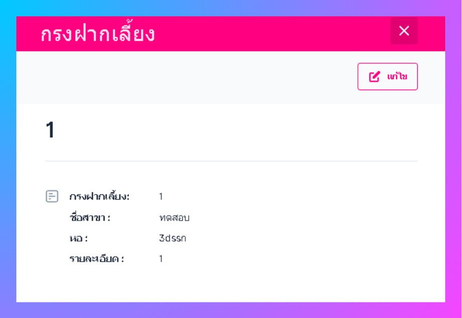 ระบบจะเข้าสู่หน้ารายละเอียดกรงฝากเลี้ยง กด"แก้ไข"ที่มุมขวาบน