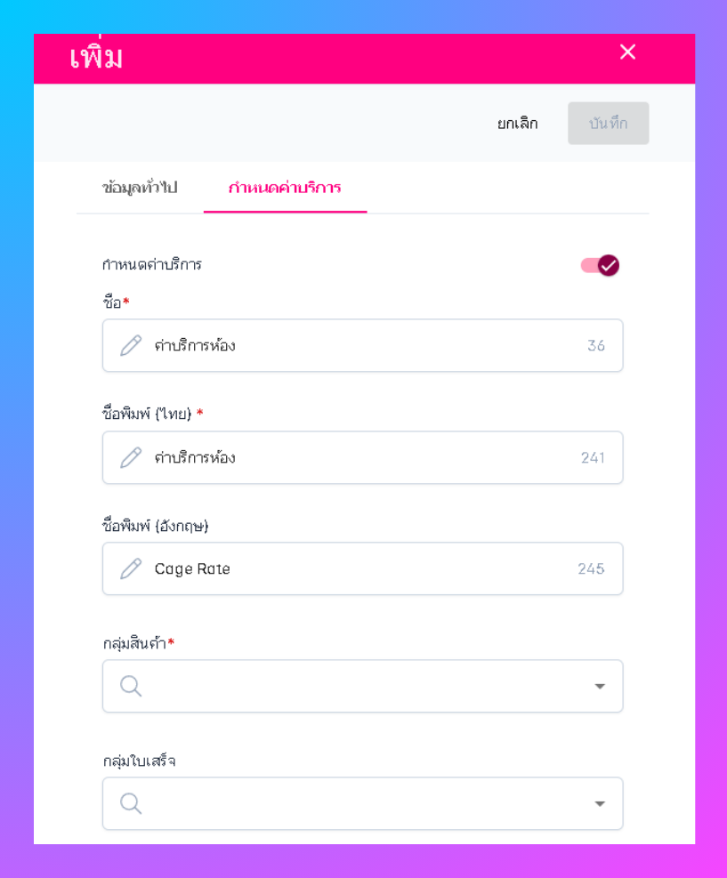 หน้ากำหนดค่าบริการ ผู้ใช้งานสามารถเพิ่มข้อมูลได้ดังนี้