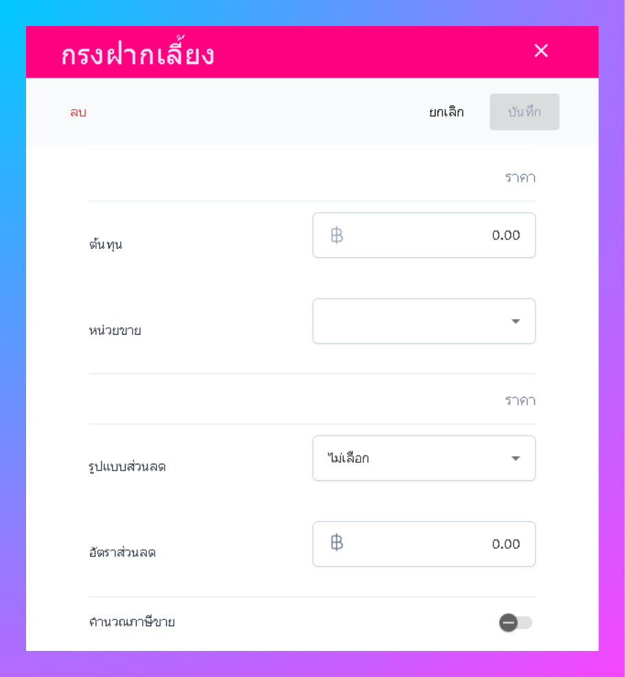 สามารถกำหนดราคาต้นทุน รูปแบบส่วนลด และ เปิด-ปิดคำนวณภาษีขาย