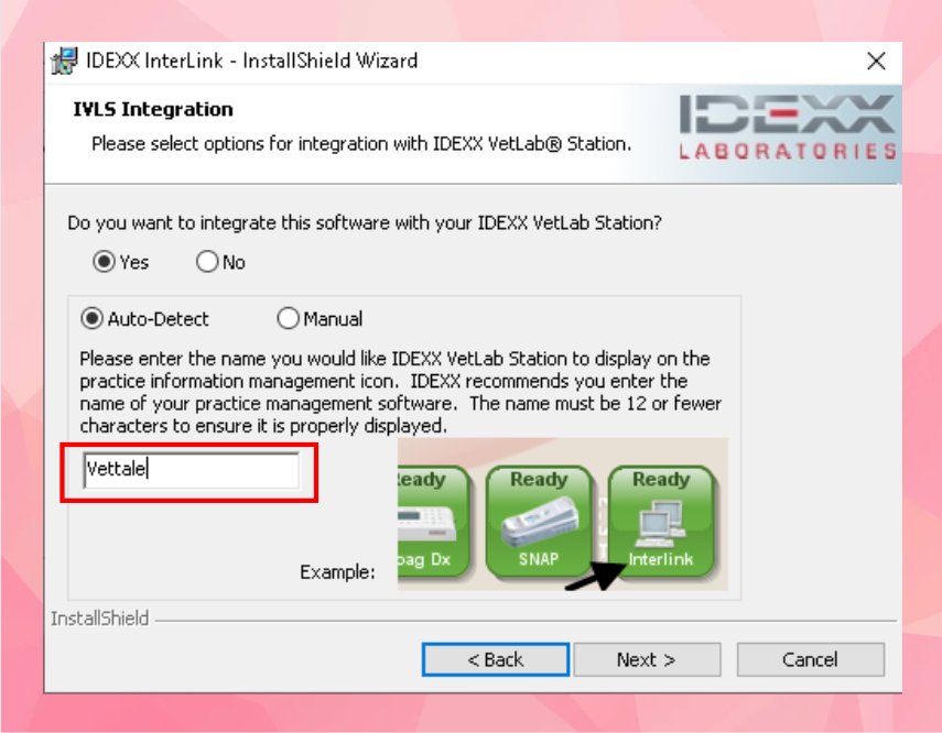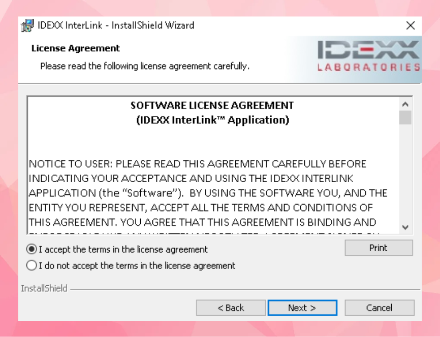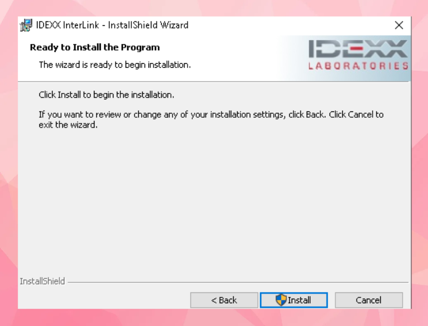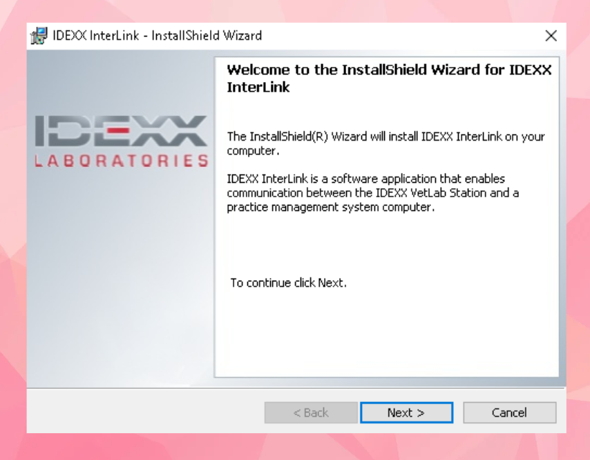 คอมพิวเตอร์จะแสดงหน้าต่าง IDEXX Interlink - InstallShield Wizard