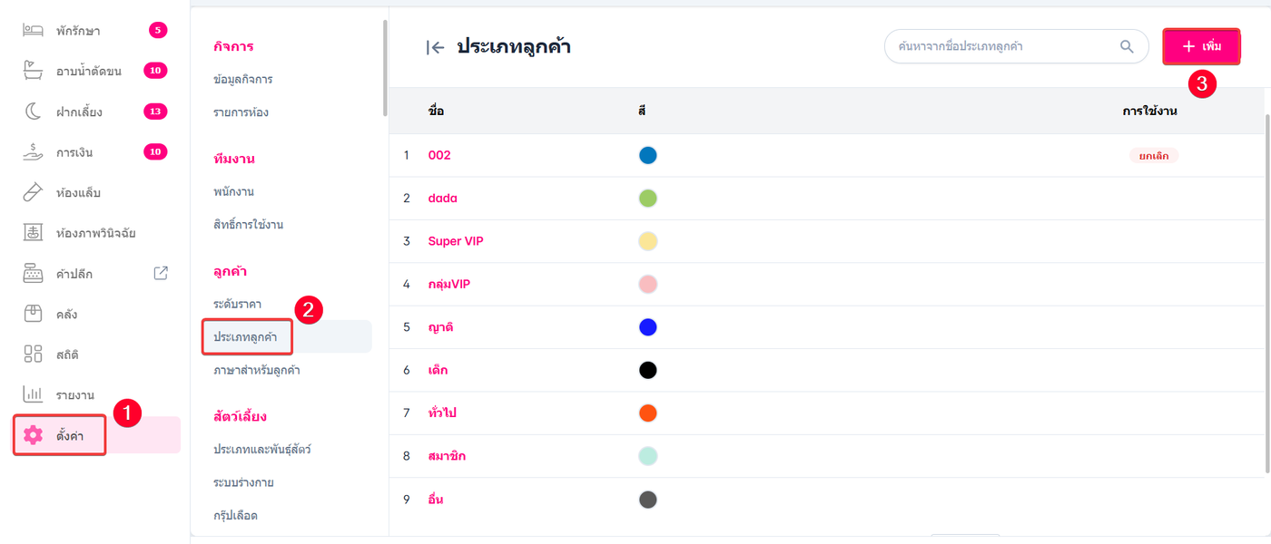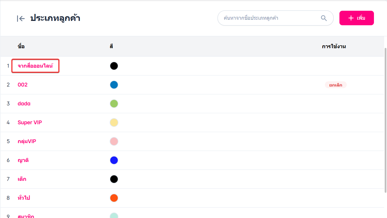 หากผู้ใช้งานต้องการเพิ่มประเภทลูกค้าให้ผู้ใช้คลิกปุ่ม "+ เพิ่ม"