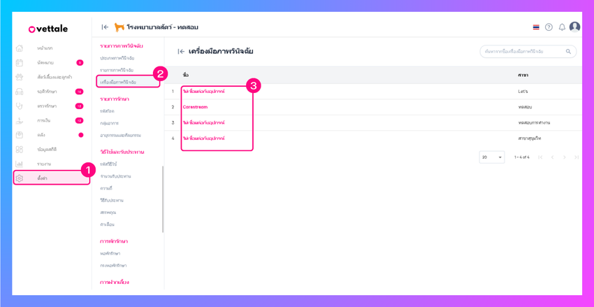 การใช้การตั้งค่าเครื่องมือภาพวินิจฉัย จะช่วยให้ผู้ใช้งานสามารถเลื่อเครื่องมือภาพวินิจฉัยที่มีในโรงพยาบาลมาใช้ได้อย่างเป็นระบบและมีความสอดคล้องกับมาตรฐานทางการแพทย์ที่กำหนดไว้