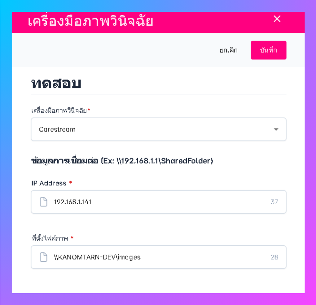 การตั้งค่าเครื่องมือภาพวินิจฉัย