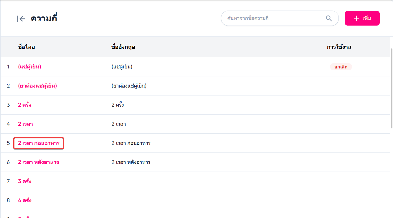 • กรอกข้อมูลความถี่ในช่องชื่อไทย อังกฤษ