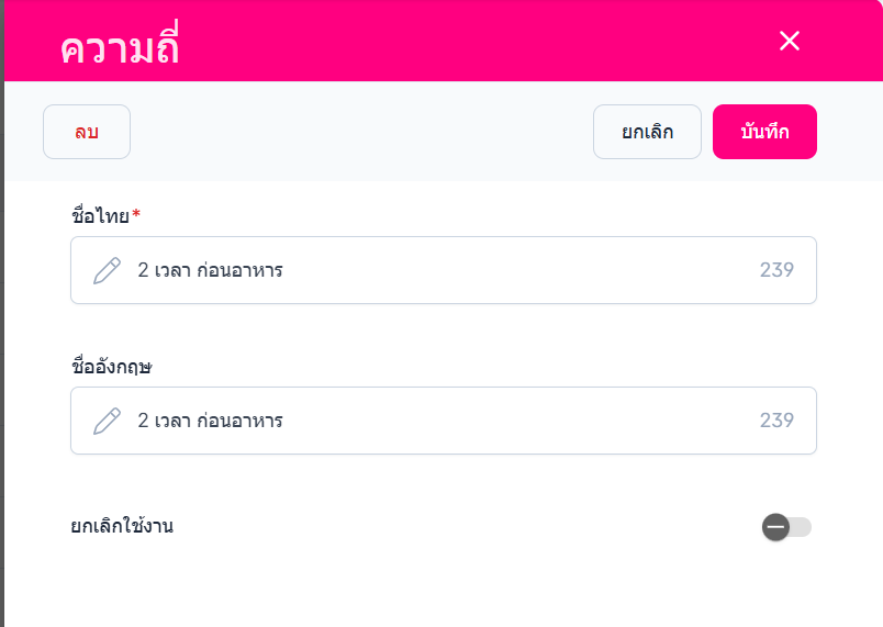 • ผู้ใช้งานสามารถเลือกเปิดปิดการยกเลิกการใช้งานได้ (หากยกเลิกแล้วระบบจะไม่ใช้งานข้อมูลที่ยกเลิกไป)