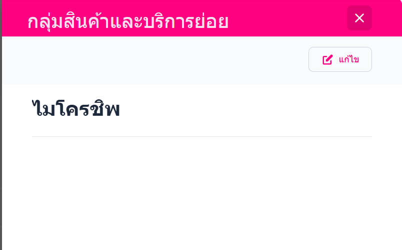 ระบบจะเข้าสู่หน้าแก้ไขสินค้าและบริการย่อย ให้ผู้ใช้กดปุ่มแก้ไขเพื่อเข้าสู่หน้าแก้ไข
