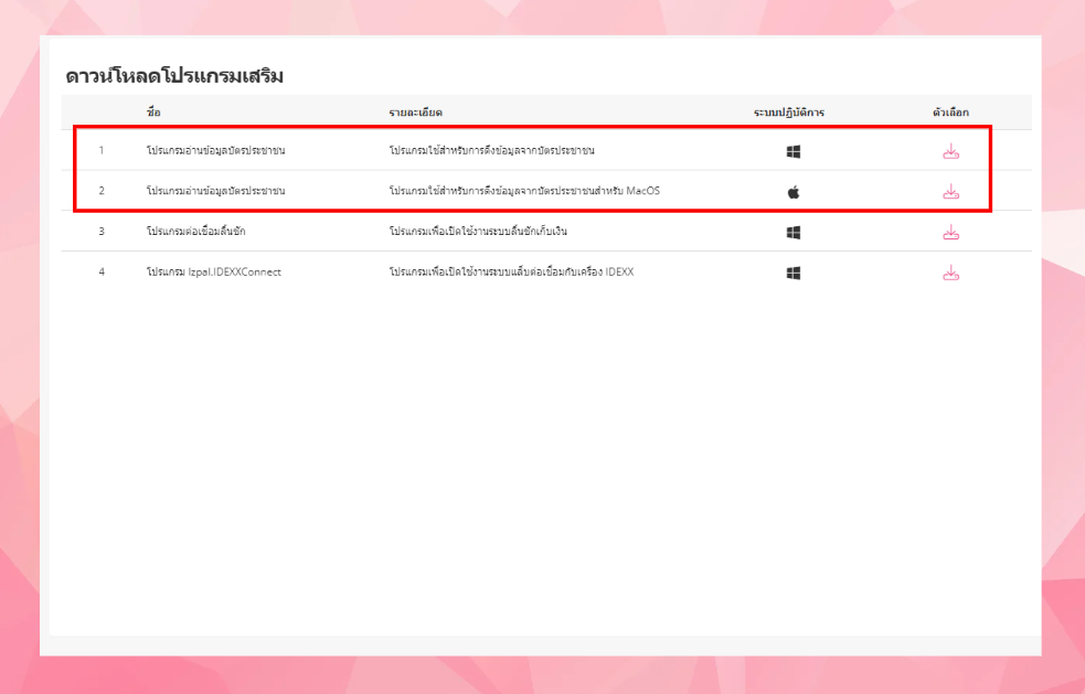 ผู้ใช้งานสามารถดาวน์โหลดและติดตั้งโปรแกรมอ่านข้อมูลบัตรประชาชน เพื่อการดึงข้อมูลจากบัตรประชาชนได้ตามขั้นตอนต่อไปนี้