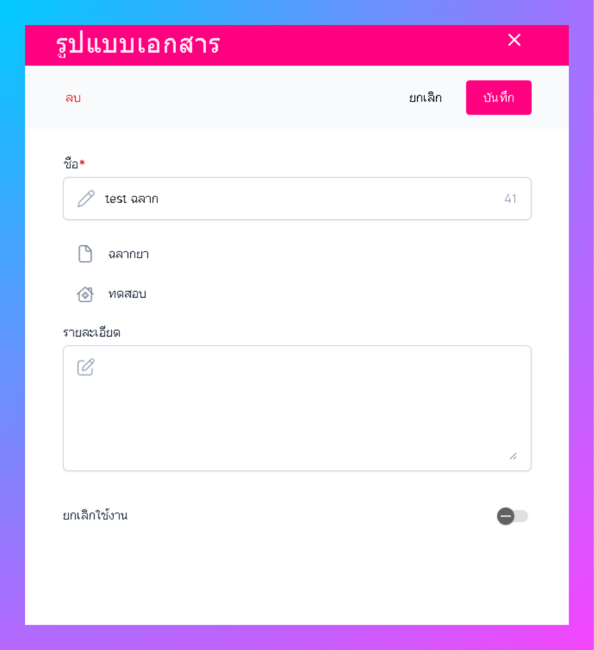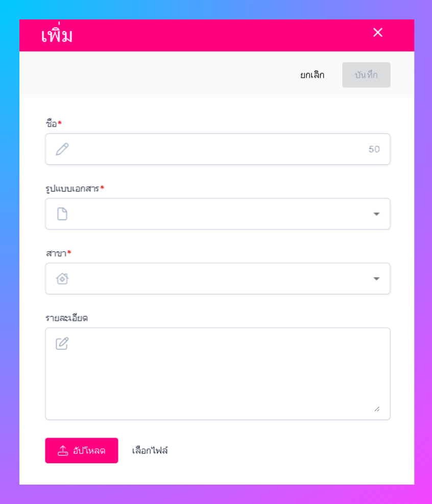 ระบบจะแสดงหน้าต่างเพิ่มรูปแบบเอกสารสามารถเพิ่มได้ดังนี้