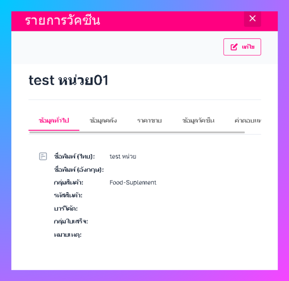 คู่มือนี้จะอธิบายวิธีการจัดการรายการวัคซีนในระบบ โดยครอบคลุมการเพิ่ม, แก้ไข และยกเลิกการขายวัคซีน