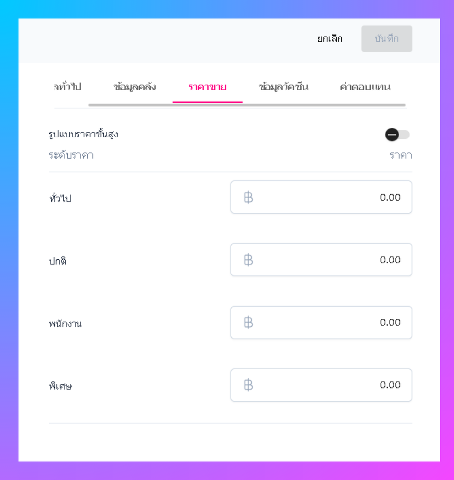 • สามารถเปิดใช้งานสินค้าขายปลีกได้ (ถ้าเปิดใช้งานจะไม่สามารถตั้งราคาเป็นแบบขั้นบันไดได้ )