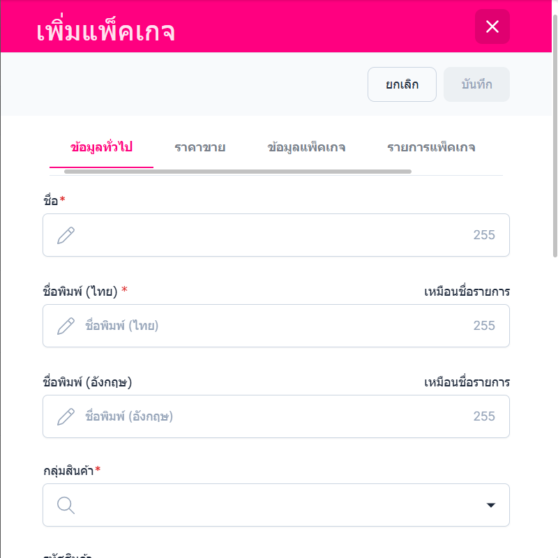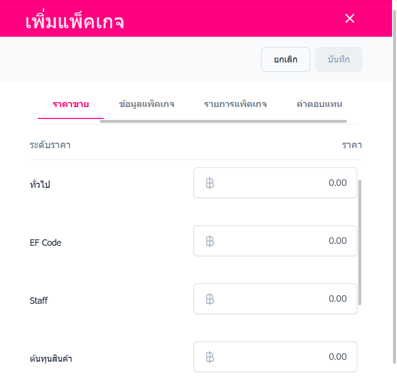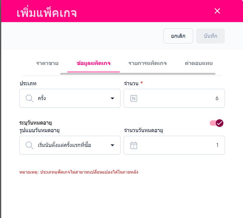 ผู้ใช้สามารถแก้ไขในส่วนข้อมูลแพ็คเกจดังนี้