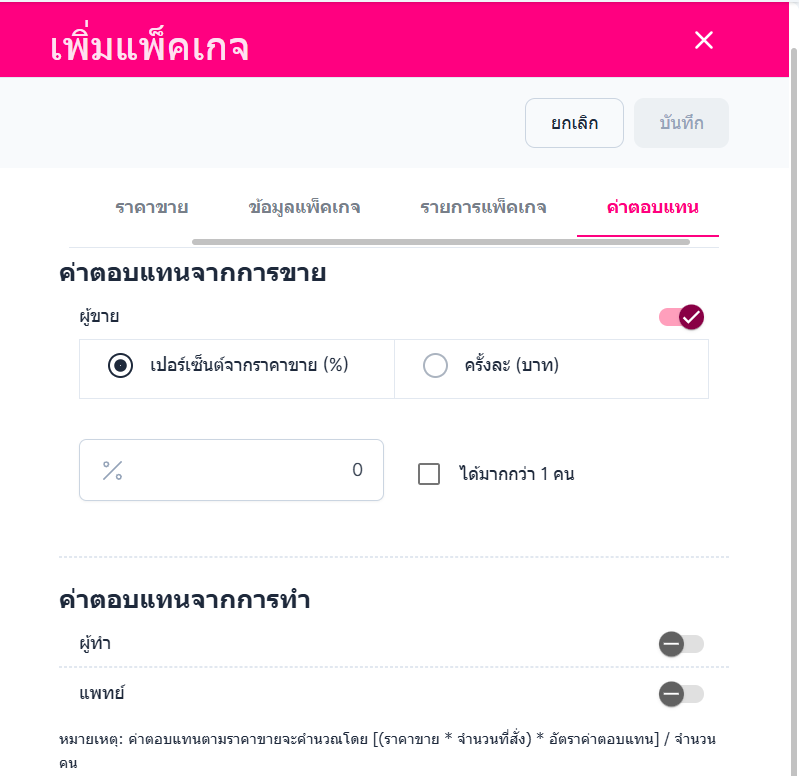 สามารถแก้ไข/ปิดการแบ่งค่าตอบแทน หรือกำหนดเปอร์เซ็นค่าตอบแทนได้