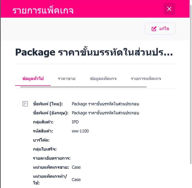 แก้ไขรายการแพ็คเกจ