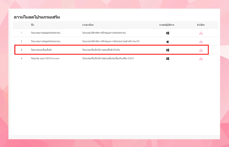 การดาวโหลดโปรแกรมต่อเชื่อมลิ้นชัก