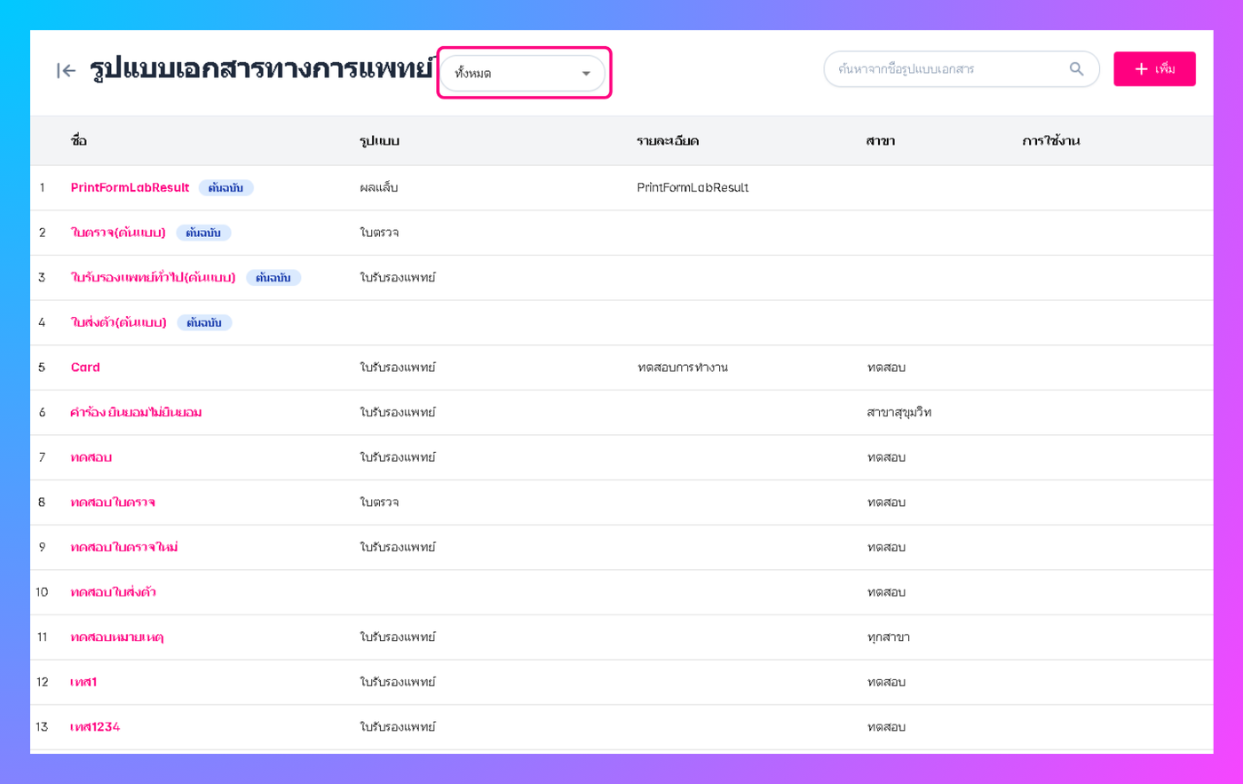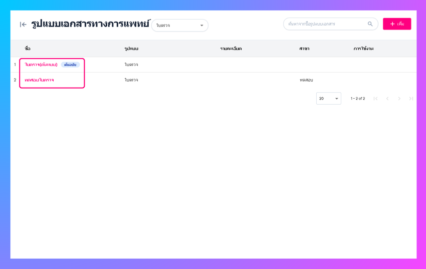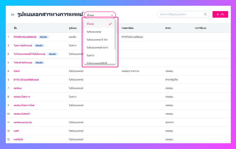 เพิ่มรูปแบบเอกสารทางการแพทย์