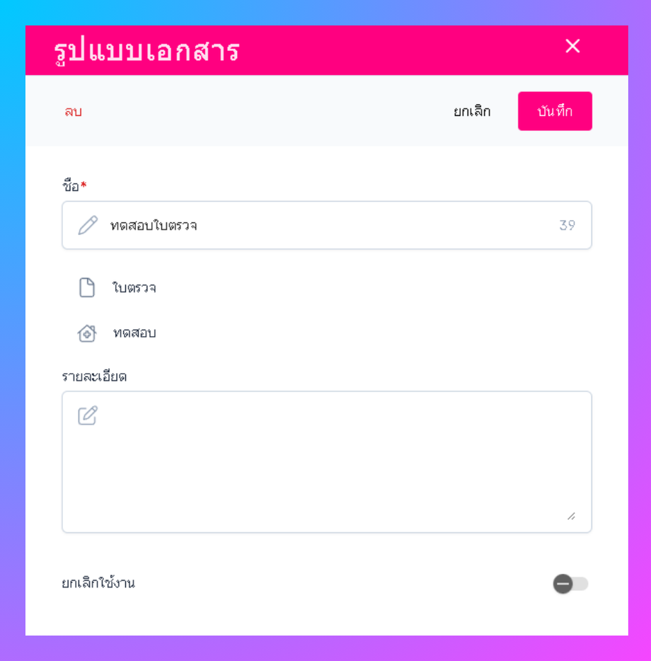 ระบบจะแสดงหน้าต่างเพิ่มรูปแบบเอกสารทางการแพทย์สามารถเพิ่มได้ดังนี้