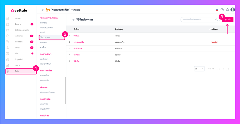 ไปที่ตั้งค่า > เมนูวิธีใช้ > วิธีรับประทาน > คลิกปุ่ม "เพิ่ม"