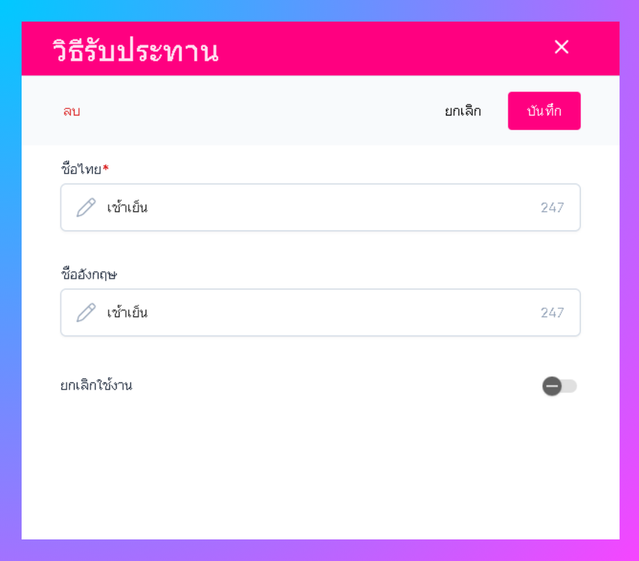 ผู้ใช้งานสามารถเลือกเปิดปิดการยกเลิกการใช้งานได้ (หากยกเลิกแล้วระบบจะไม่ใช้งานข้อมูลที่ยกเลิกไป)