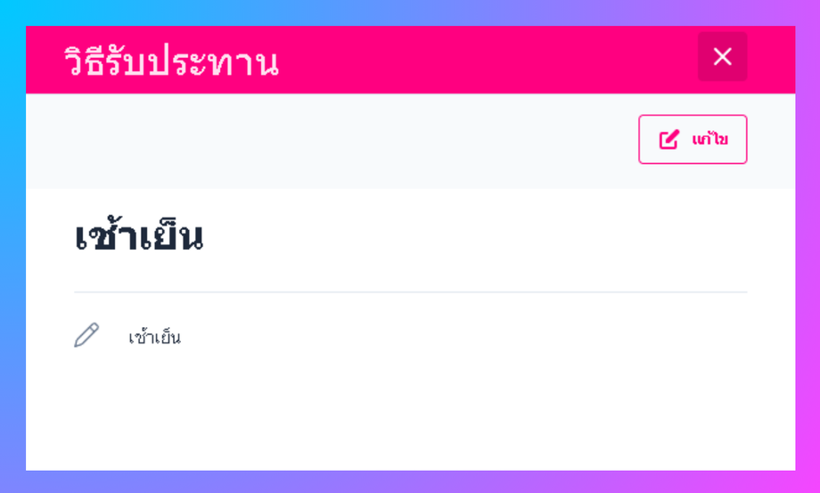 ระบบจะเข้าสู่หน้ารายละเอียดวิธีใช้รับประทาน กดปุ่มแก้ไข