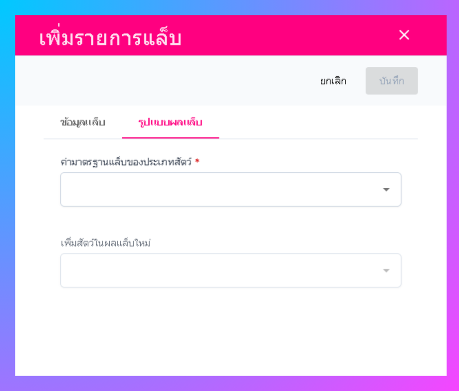 ผู้ใช้งานจะเข้าสู่หน้าเพิ่มข้อมูลแล็บ และ รูปแบบผลแล็บ