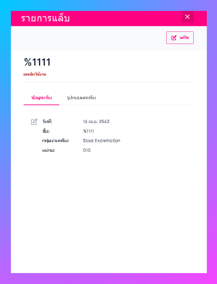 ผู้ใช้สามารถแก้ไขได้โดยการคลิกที่ชื่อของผลแล็บ
