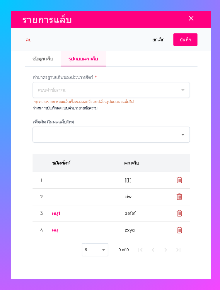 ผู้ใช้งานสามารถแก้ไขชนิดสัตว์และเปลี่ยนค่ามาตรฐานได้