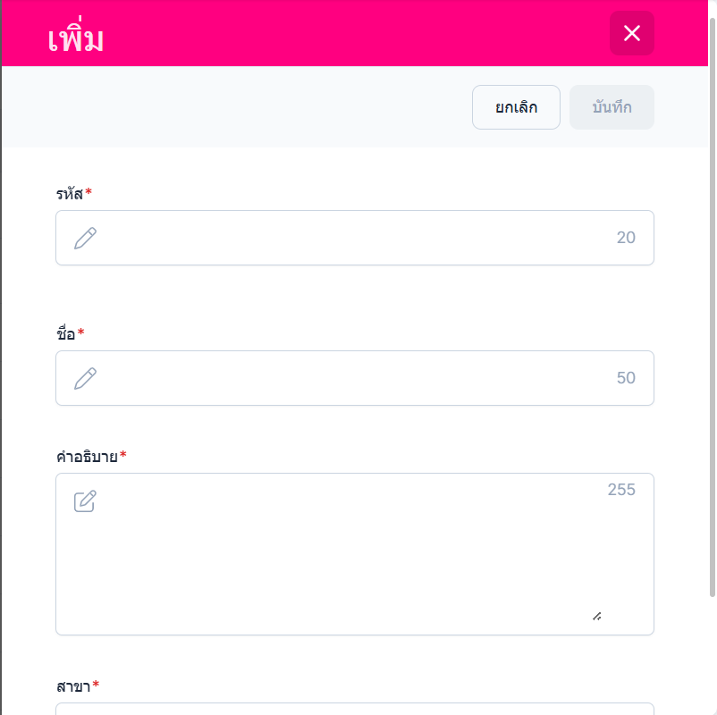 กรอกข้อมูลในช่องที่มีสัญลักษณ์ * ให้ครบ หากกรอกไม่ครบจะไม่สามารถกดบันทึกได้