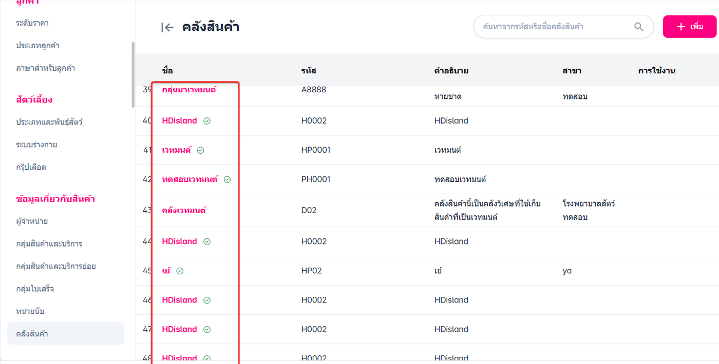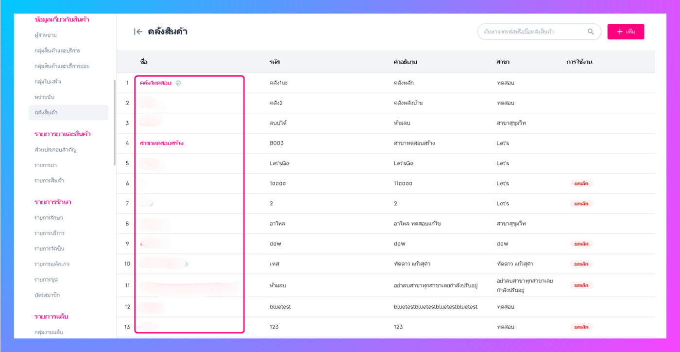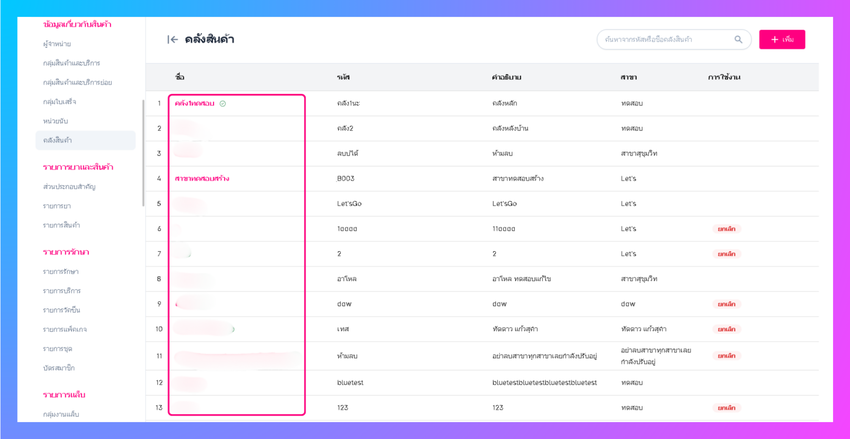 เมื่อผู้ใช้งานเข้าสู่หน้าคลังสินค้า ให้ผู้ใช้งานคลิกชื่อคลังสินค้าที่ต้องการแก้ไข