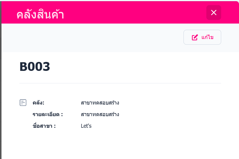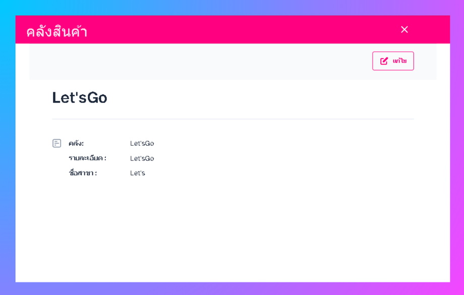 ระบบจะเข้าสู่หน้ารายละเอียดคลังสินค้า จากนั้ให้คลิกปุ่มแก้ไข
