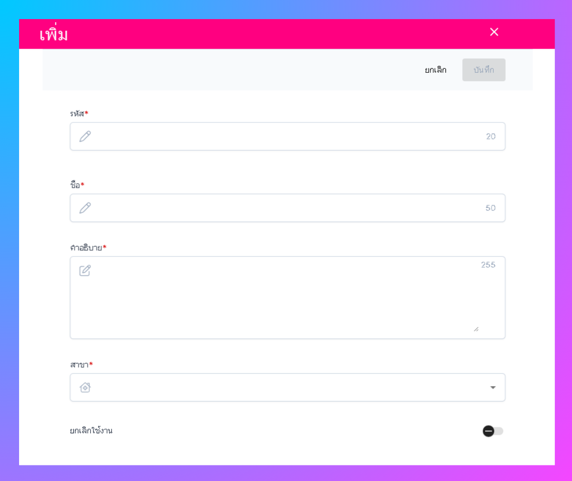 เมื่อกรอกข้อมูลเสร็จแล้ว คลิกปุ่ม "บันทึก" ระบบจะทำการบันทึกข้อมูล