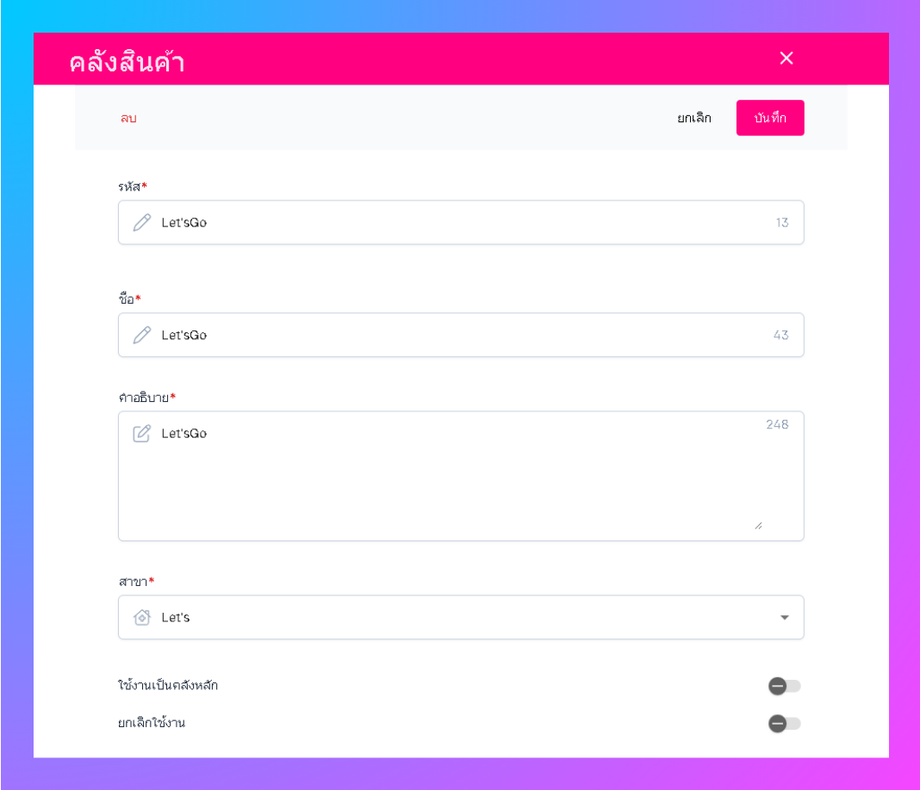 ระบบจะเข้าสู่หน้าแก้ไขคลังสินค้า สามารถแก้ไขรายละเอียดได้ดังนี้